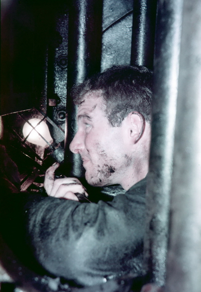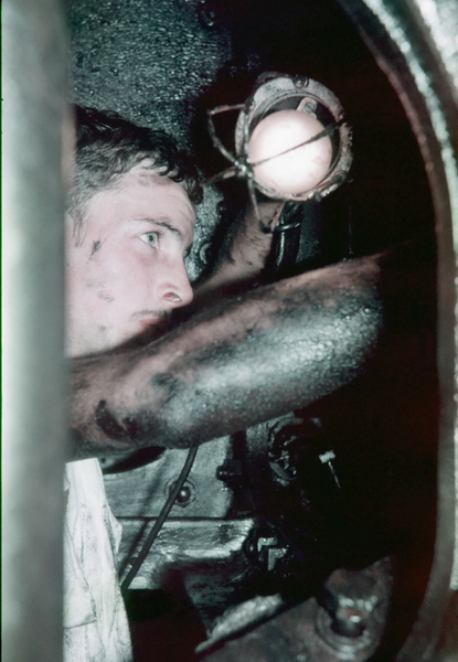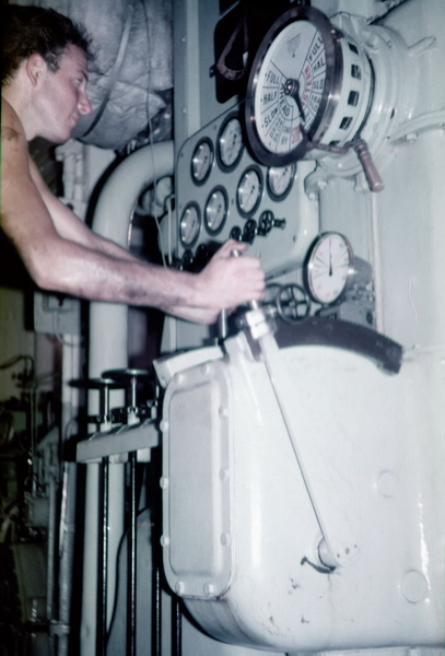 Erwin am Maschinenfahrstand der Hauptmaschine vom Typ 5TD56 von Gebrüder Sulzer AG Winterthur
