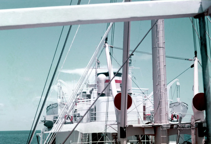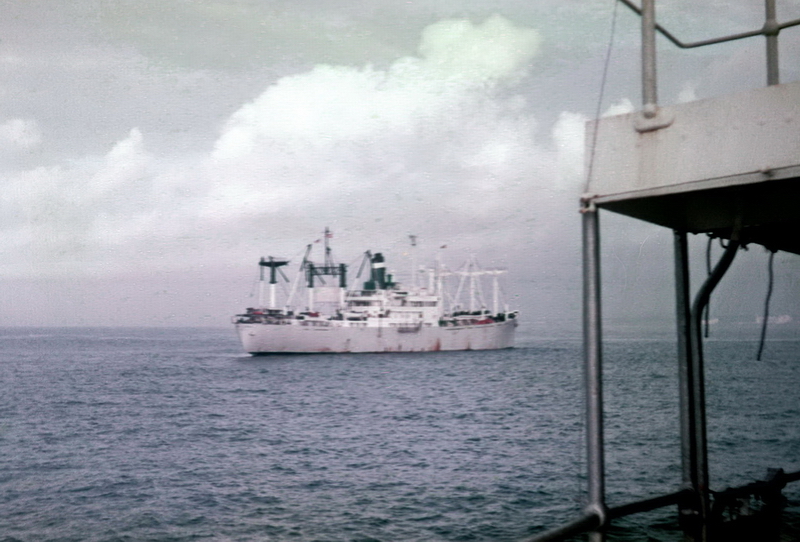 Mit einem amerikanischen Santa Frachter von der Grace Line in Mittelamerika vor Anker