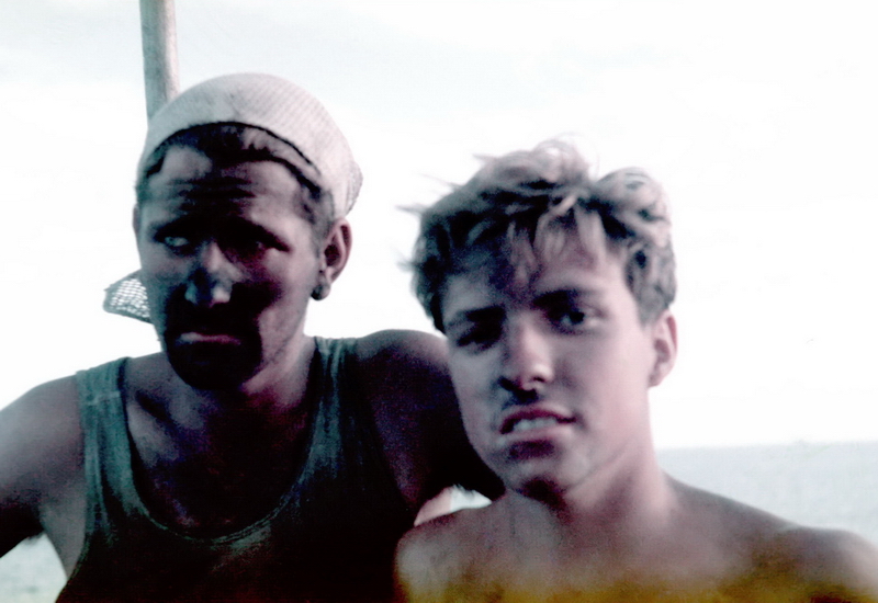 Matrosen Pit links und Pepito rechts. Pit Zahnd war später auf dem Bielersee als Kapitän tätig und Pepito arbeitete auf dem Ballenberg Freilichtmuseum der Schweiz, Hofstetten bei Brienz