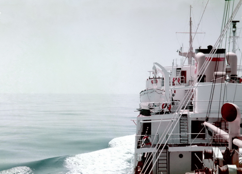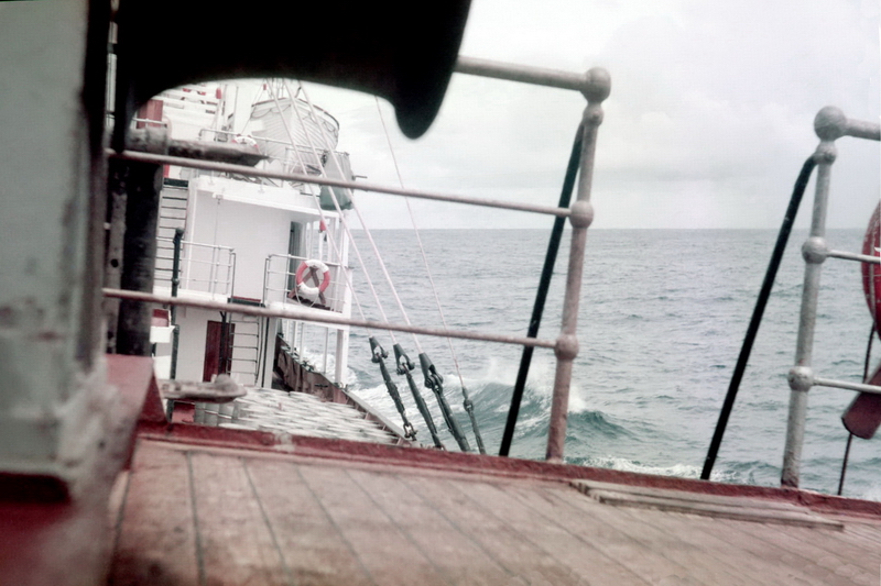 Auf hoher See mit Blick von achtern nach mittschiffs
