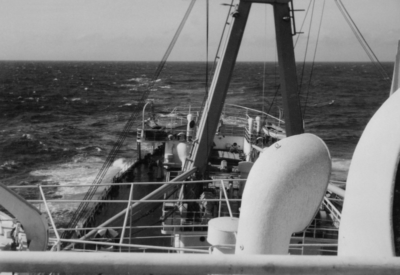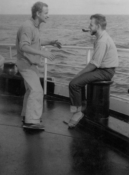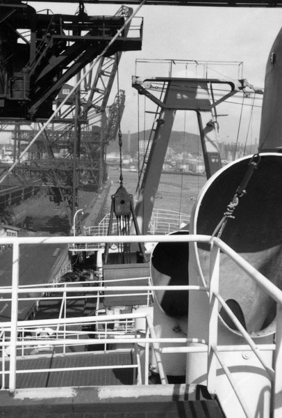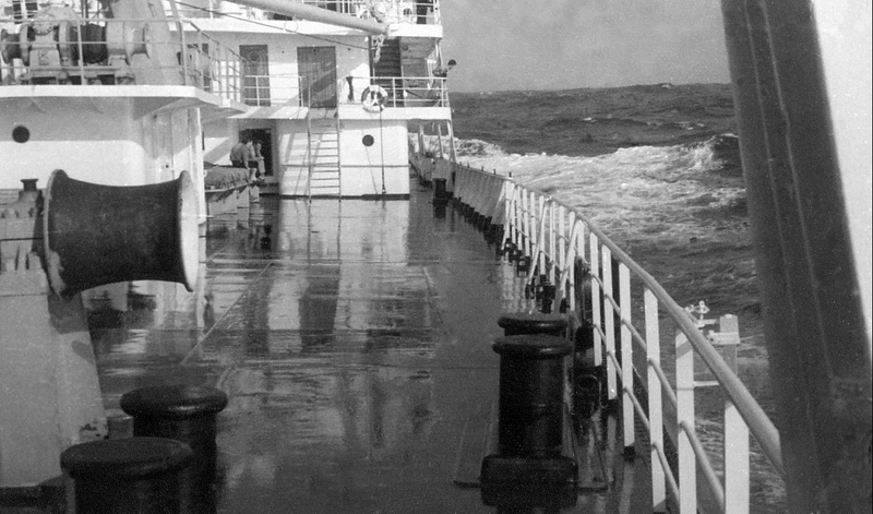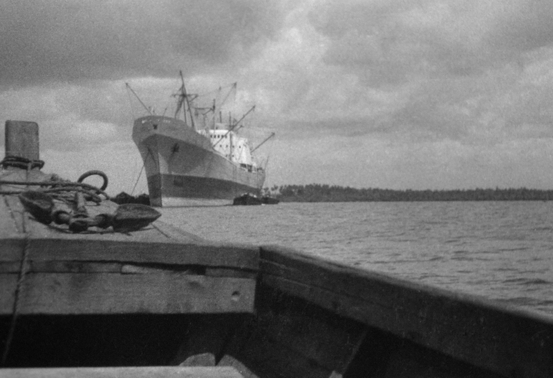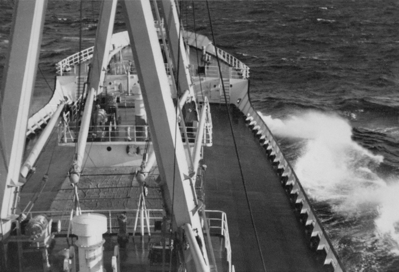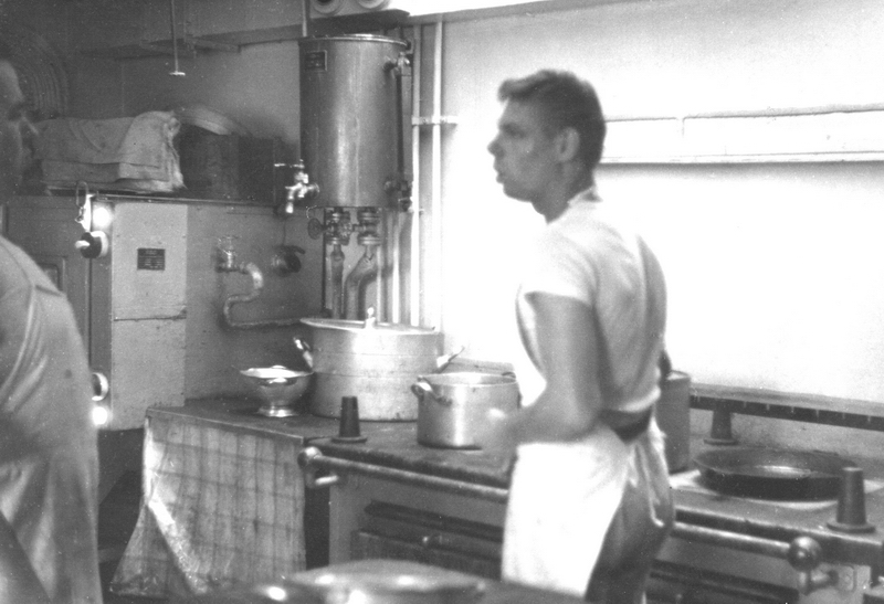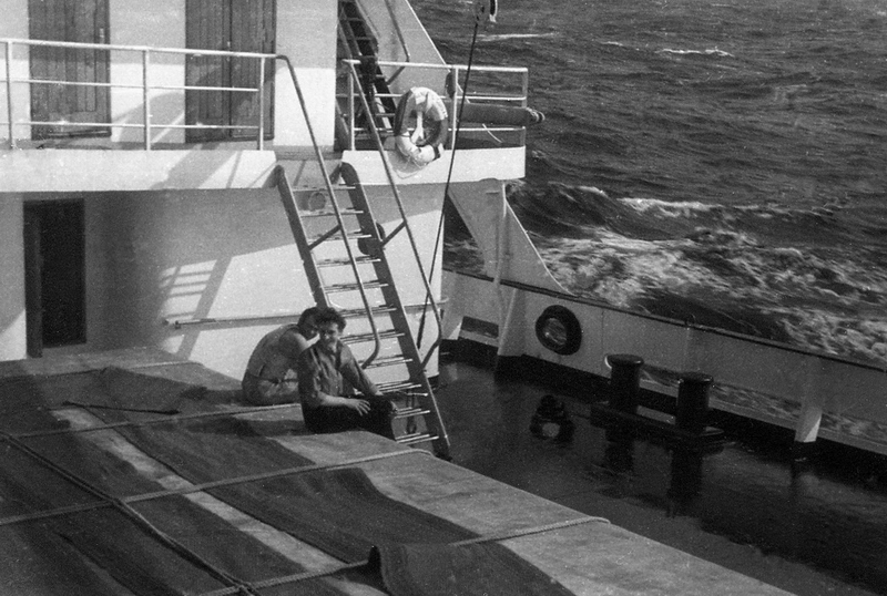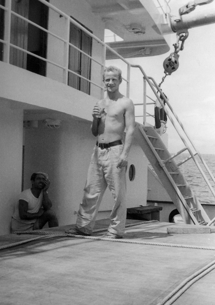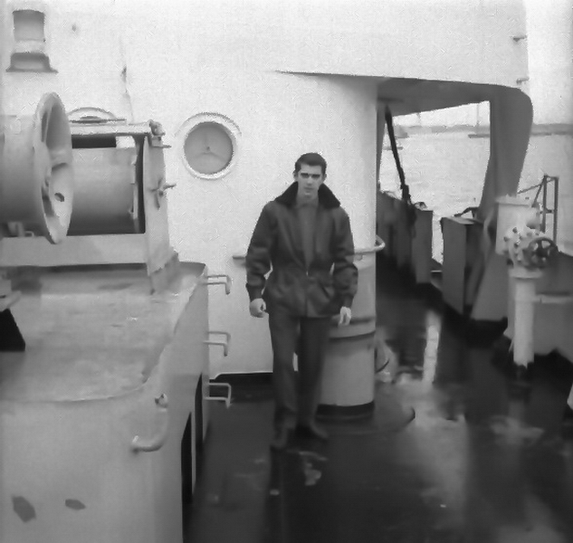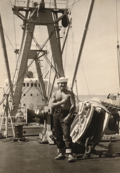 Matrose Jakob Zweifel auf der GENERAL GUISAN 1957 am Anker vor Newport News