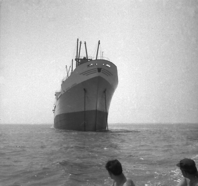 M/S GENERAL GUISAN vor Newport News am Anker 1957