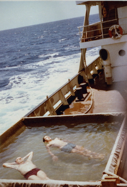 Die Neger die im Pool die Täuflinge tauchen, sind zwei kroatische Matrosen u. der Täufling der Deckboy, leider habe ich seinen Namen nicht mehr präsent. Bildherkunft / Photosource: © SwissShips / © Ottavio Loretini |