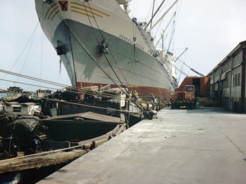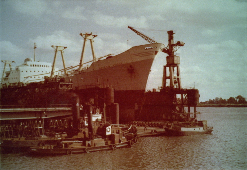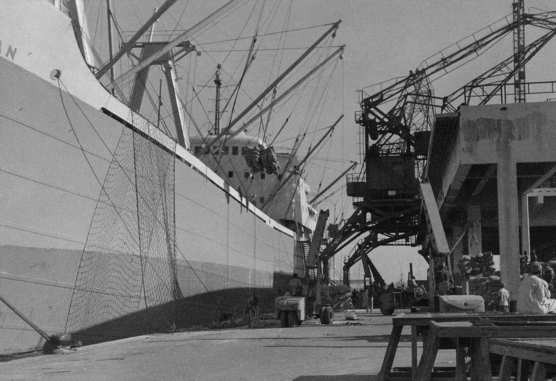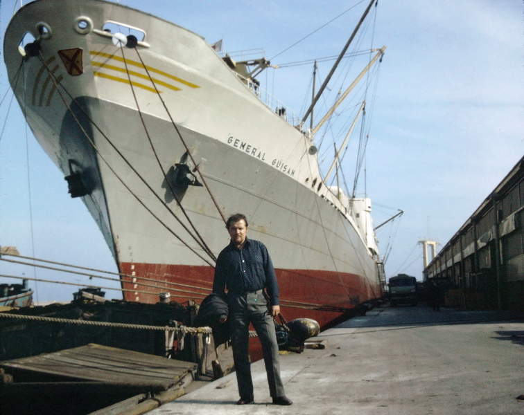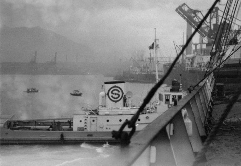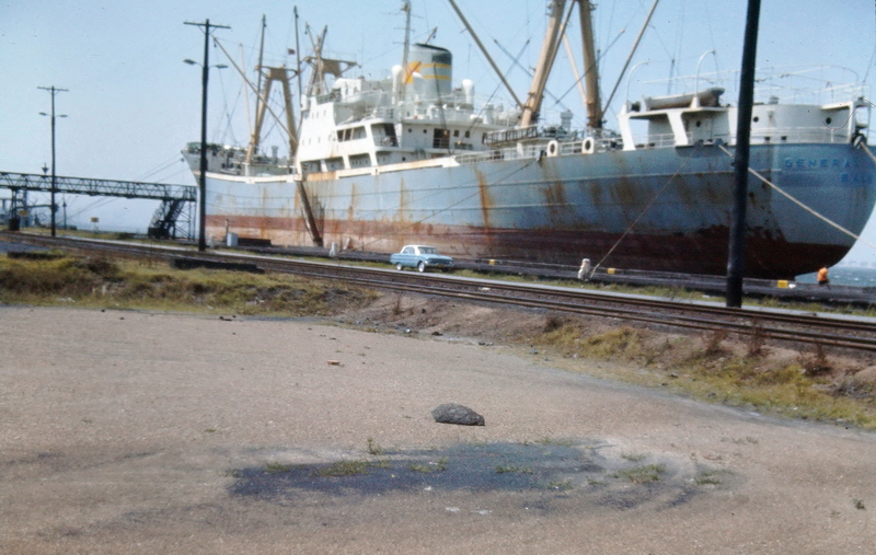 Im Klöcknerhafen in Bremen im Dock Frühling 1961. Der italienisch Kapitän erhängte sich in der Dusche. 3 Tage vor auslaufen kam ein 80 jähriger französischer Kapitän als Ablöser an Bord