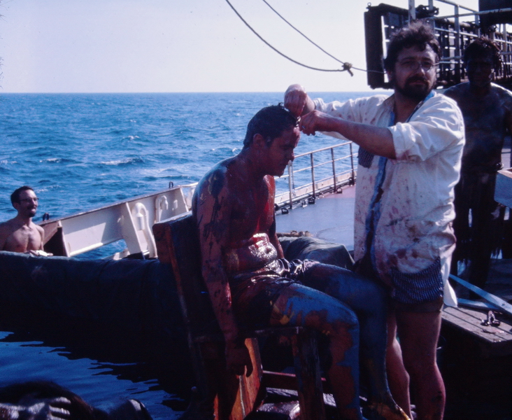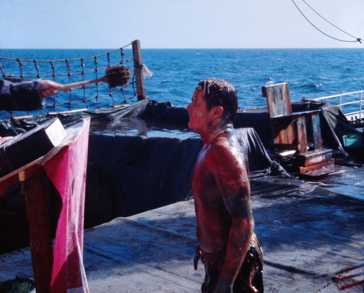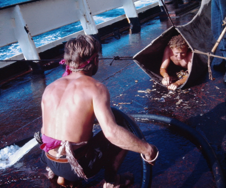 Äquator Taufe - Coiffeur beim Kippstuhl in den Pool ist der leider in Turbenthal verstorbene 3rd Eng. Kurt Endres als Coiffeur zu sehen