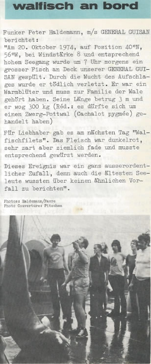 Toter Wal der an Bord gespühlt wurde / Dead whale washed on board