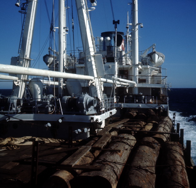 M/S HELVETIA voll beladen mit Baumstämmen für Europa