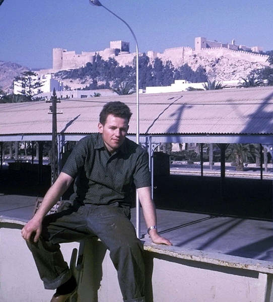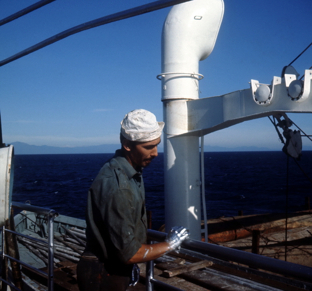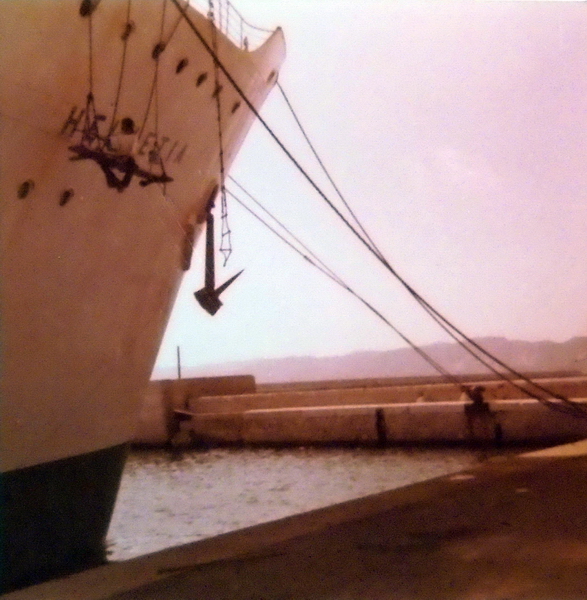 M/S HELVETIA im Hafen von im Hafen von Almeria Spanien mit Elektriker "Blitz" Heinz Schmid / M/V HELVETIA in the port of in the port of Almeria Spain with electrician Heinz Schmid