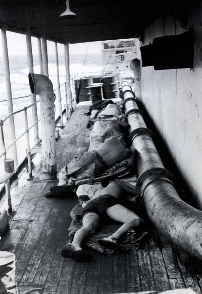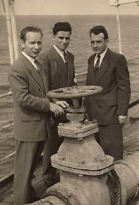 Kapitän und Schiffsoffiziere in der Hitze des Pesischen Golfes / Captain and ship's officers in the heat of the Pesian Gulf