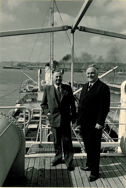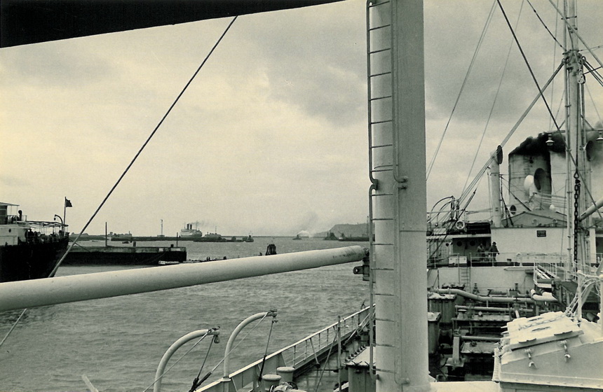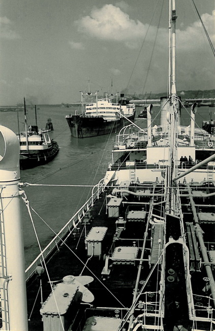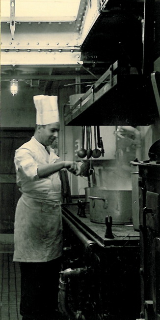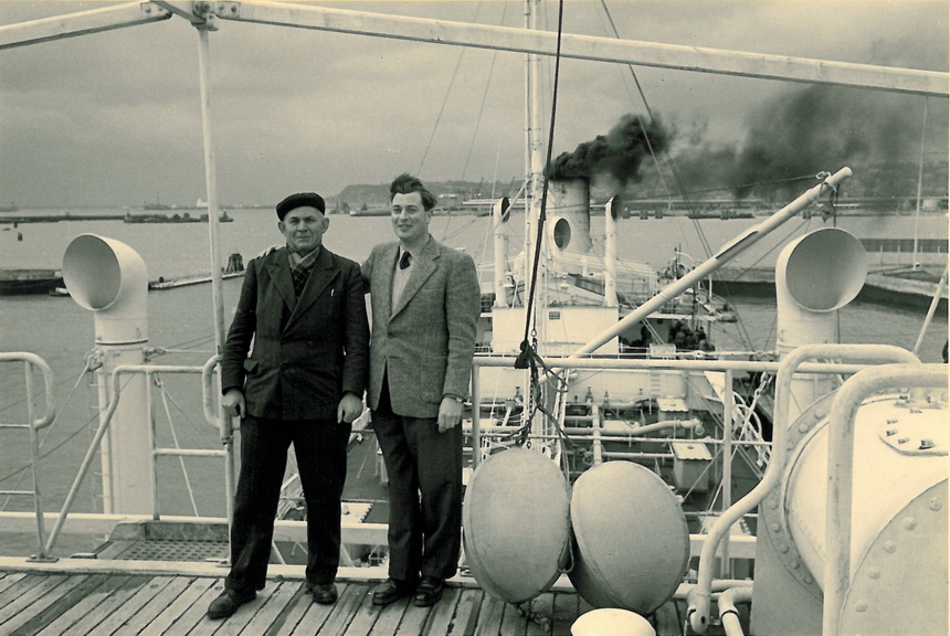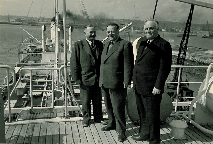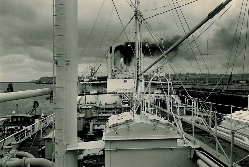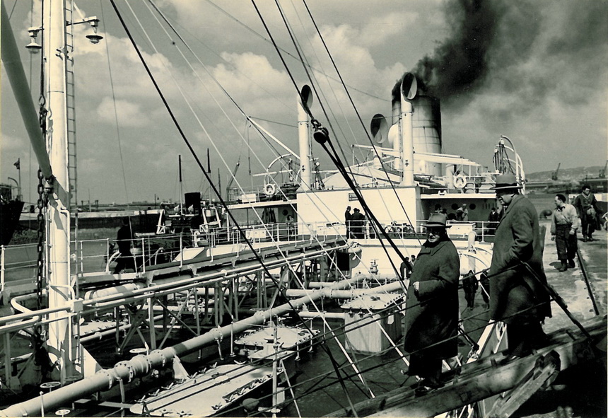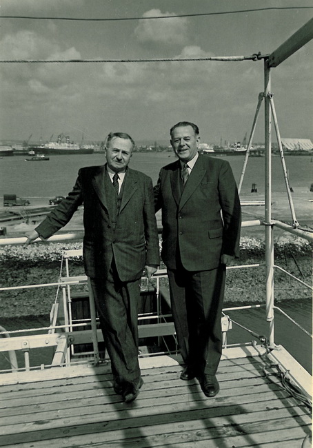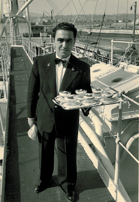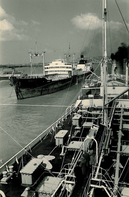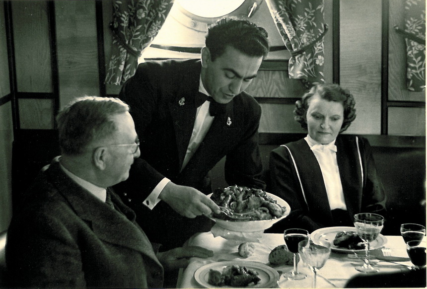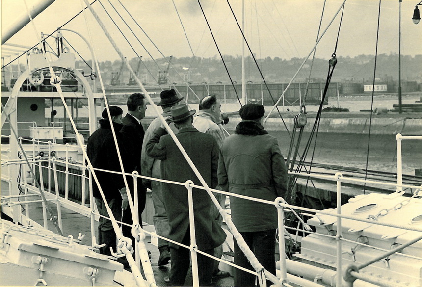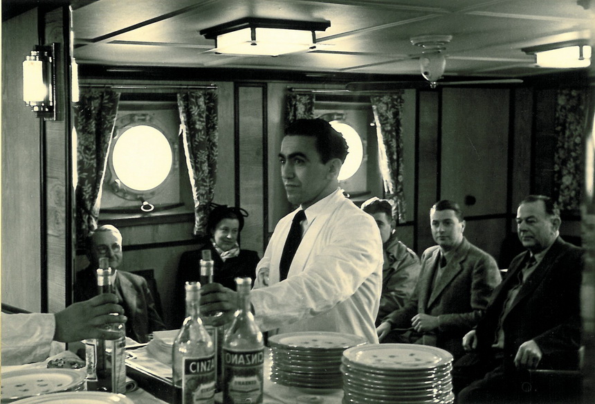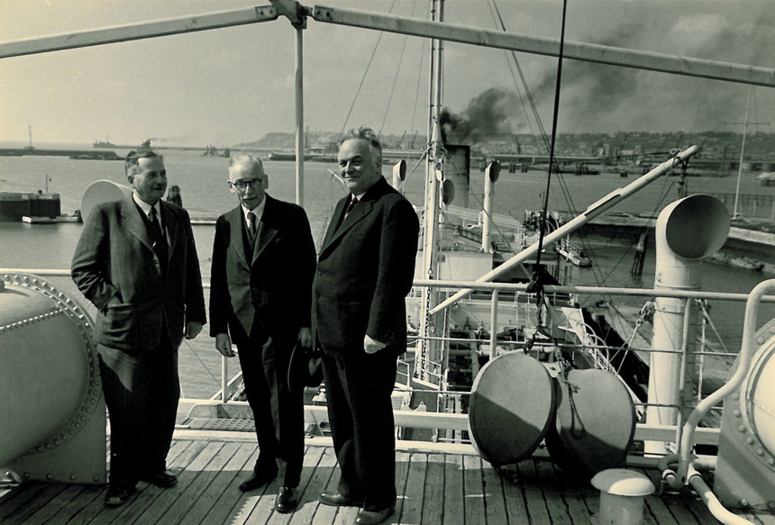 Les photos de l'album No. 17 et 20 de Gérard Bourquin, le petit-fils de Armand Bourquin ont apparemment été prises durant deux inspections du navire au Havre. Malheuresement, les photos ne sont pas datées, ni commentées, mais la mère de Gérard Bourquin était capable d'identifier quelques unes des personnes présentes sur les images, merci beaucoup à Madame Bourquin. A voir le menu photographié, nous pouvons estimer que un de ces voyages se passa en Avril 1950. Foto dagli albi nr. 17 e 20 di Gerard Bourquin, un nipote di Armand Bourquin, riprese durante due viaggi d'ispezione in auto a Le Havre. Purtroppo le foto no sono datate ne commentate, ma la madre di Gerard Bourquin era in grado di riconoscere alcune persone, mille grazie. Per via della lista del menu, un viaggio era avvenuto nel aprile del 1950. Photos from Album No. 17 and 20 from Gérard Bourquin, the grandson of Armand Bourquin, taken during two inspection trips by car to Le Havre. Unfortunately the photos were not dated, nor commented, but the mother of Gérard Bourquin was able to identify some of the persons shown, many thanks. Obviously, as shown from the menu card, one of the trips was made in April 1950.