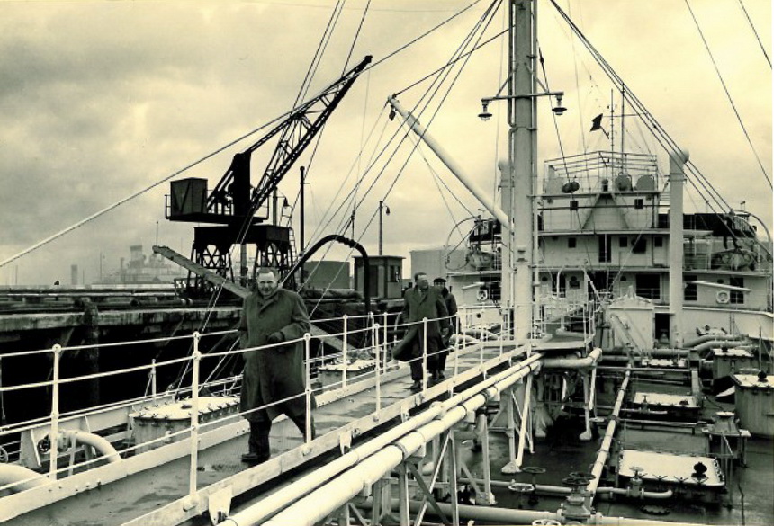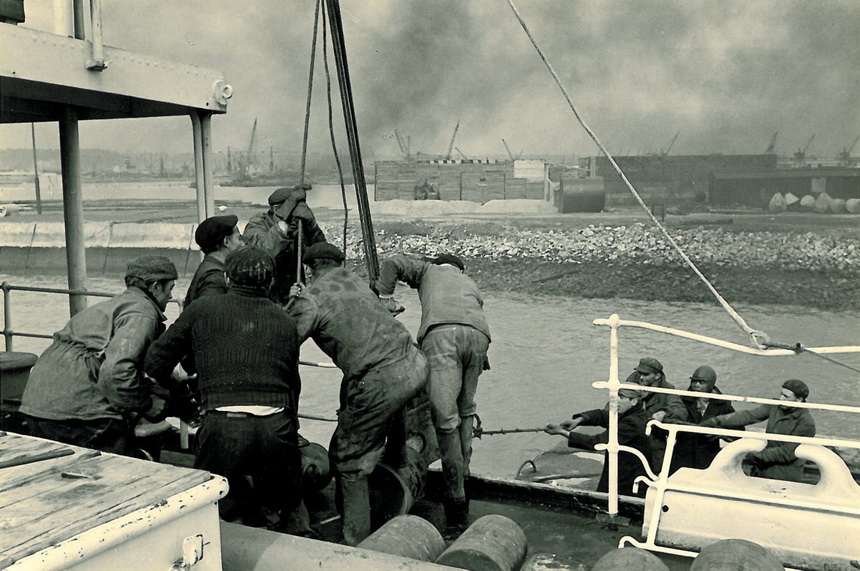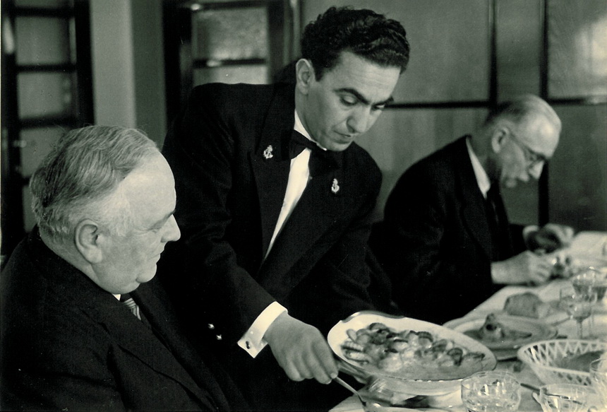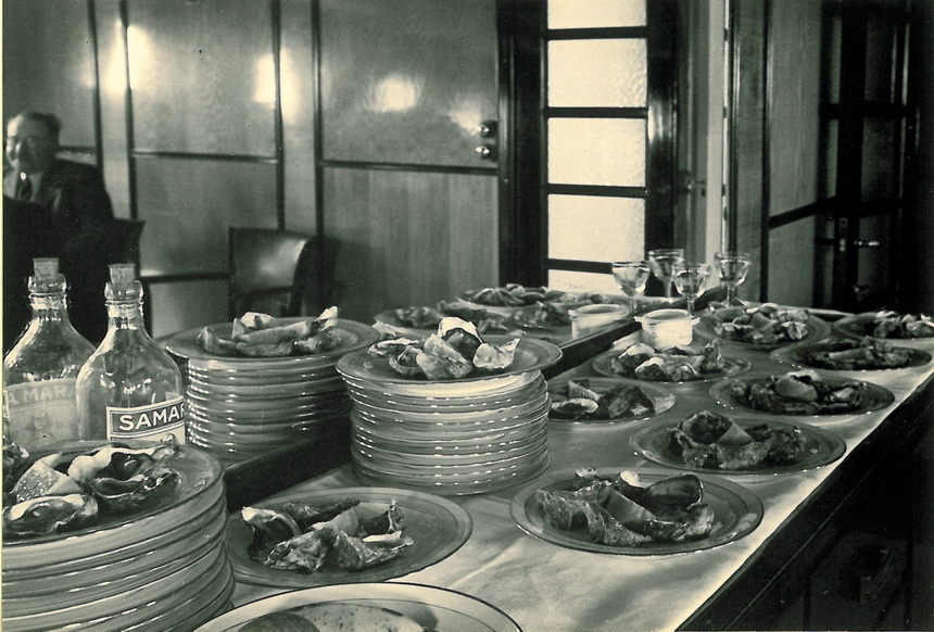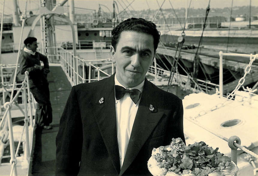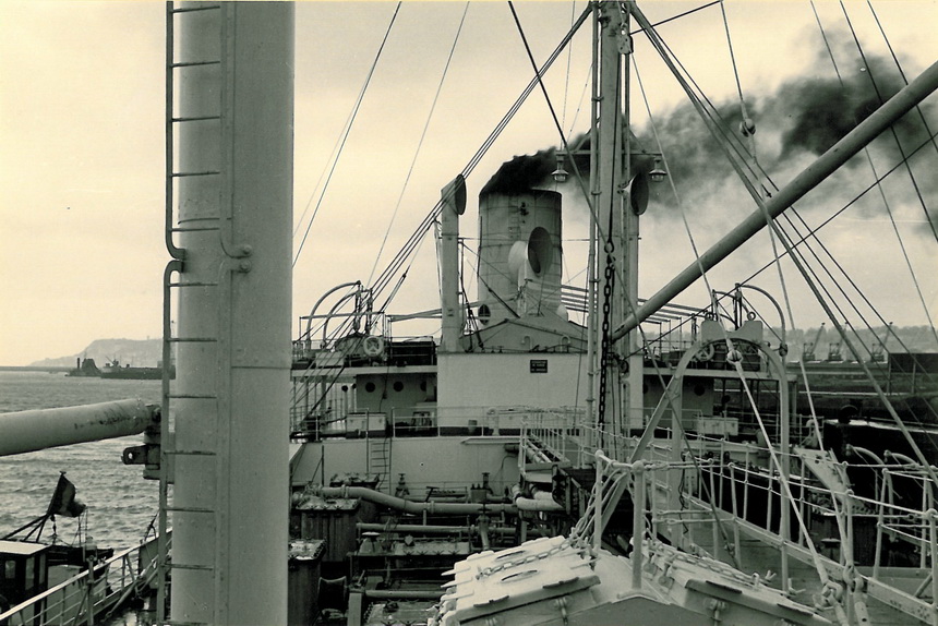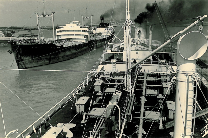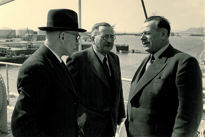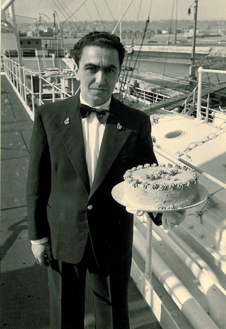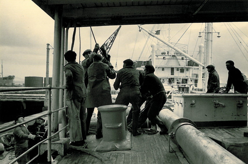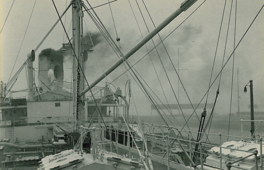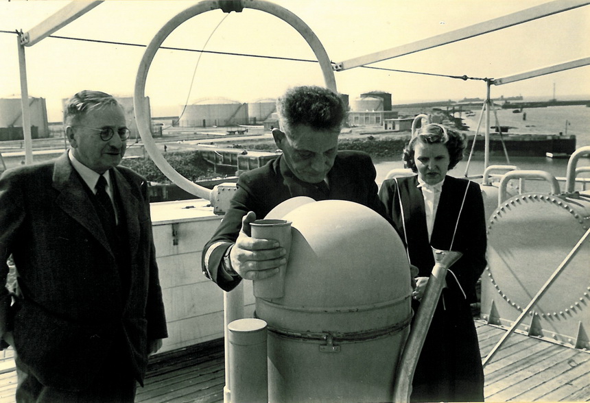 Les photos de l'album No. 17 et 20 de Gérard Bourquin, le petit-fils de Armand Bourquin ont apparemment été prises durant deux inspections du navire au Havre. Malheuresement, les photos ne sont pas datées, ni commentées, mais la mère de Gérard Bourquin était capable d'identifier quelques unes des personnes présentes sur les images, merci beaucoup à Madame Bourquin. A voir le menu photographié, nous pouvons estimer que un de ces voyages se passa en Avril 1950. Foto dagli albi nr. 17 e 20 di Gerard Bourquin, un nipote di Armand Bourquin, riprese durante due viaggi d'ispezione in auto a Le Havre. Purtroppo le foto no sono datate ne commentate, ma la madre di Gerard Bourquin era in grado di riconoscere alcune persone, mille grazie. Per via della lista del menu, un viaggio era avvenuto nel aprile del 1950. Photos from Album No. 17 and 20 from Gérard Bourquin, the grandson of Armand Bourquin, taken during two inspection trips by car to Le Havre. Unfortunately the photos were not dated, nor commented, but the mother of Gérard Bourquin was able to identify some of the persons shown, many thanks. Obviously, as shown from the menu card, one of the trips was made in April 1950.