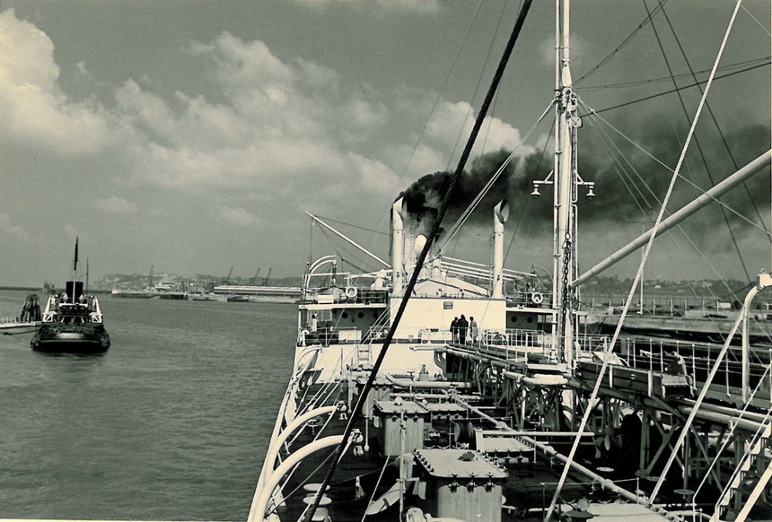 Le Havre, in the background ILE DE FRANCE departing to New York