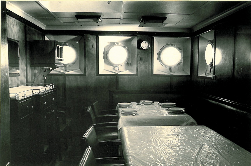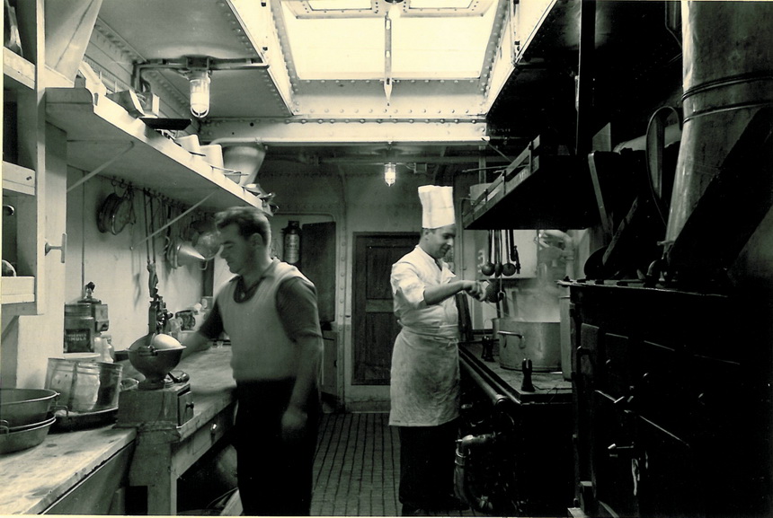 La nourriture devait être portée de la cuisine, située à l'arrière du navire, au salon du commandant, lui situé au château central