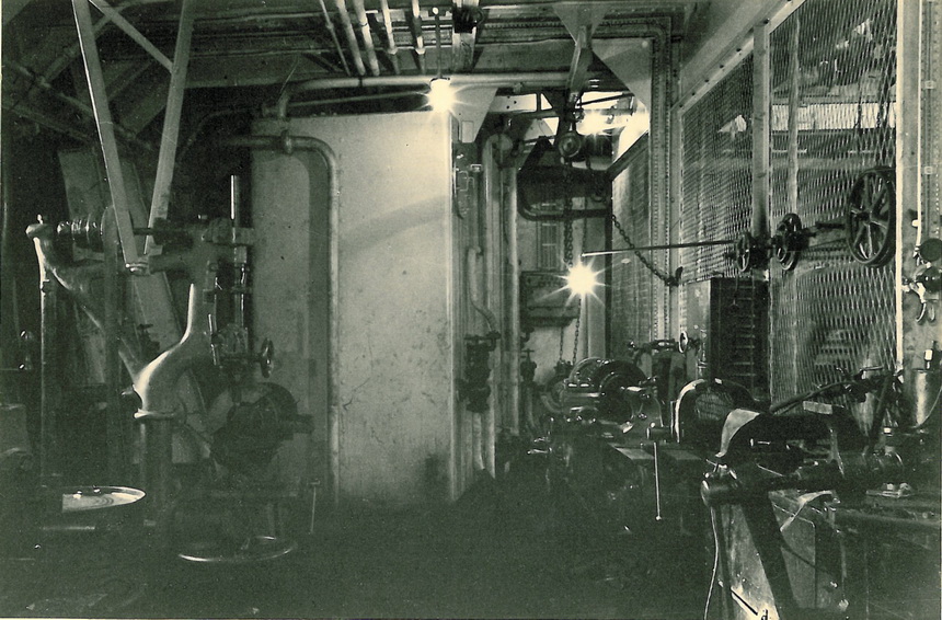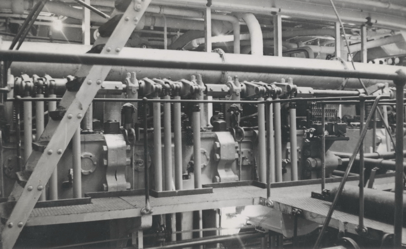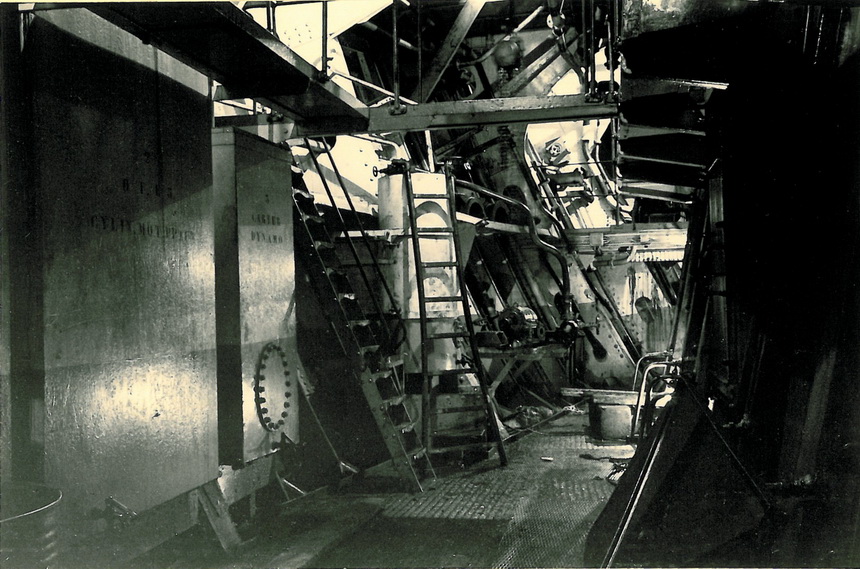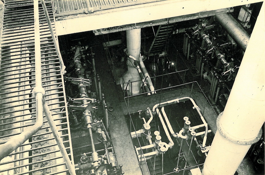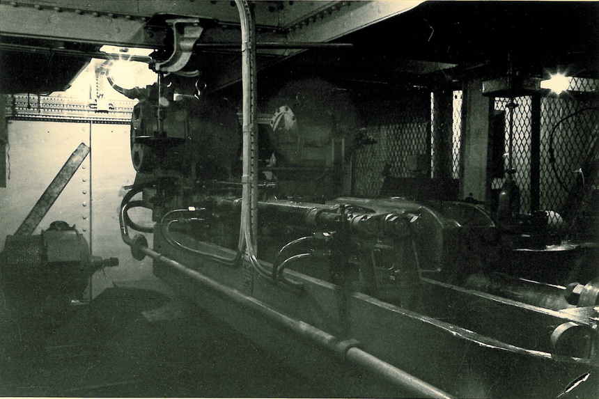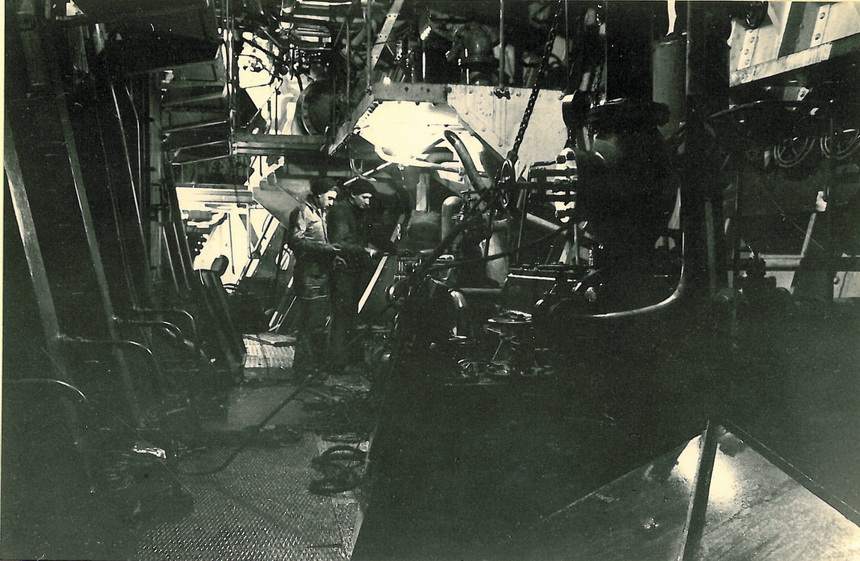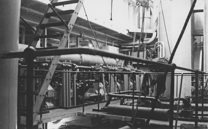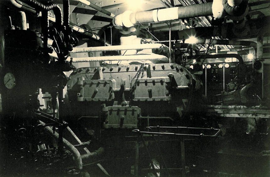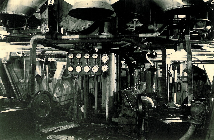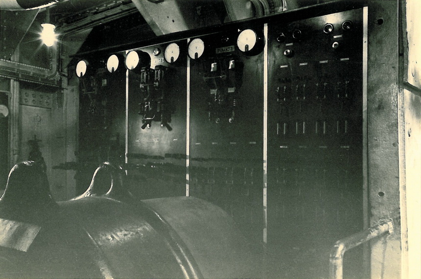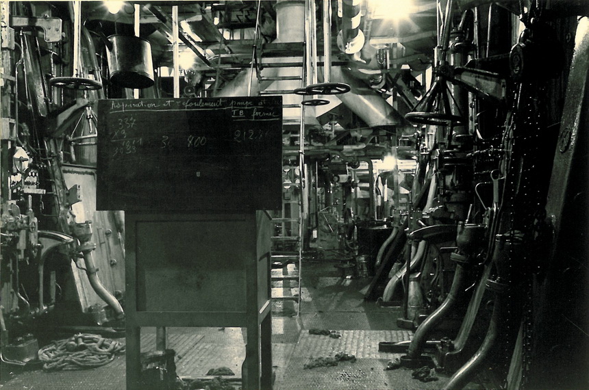 Zwischen den beiden Hauptmaschinen mit dem kleinen Schreibpult / Entre les deux machines principales, avec un petit bureau / Between the two main engines with the small writing desk
