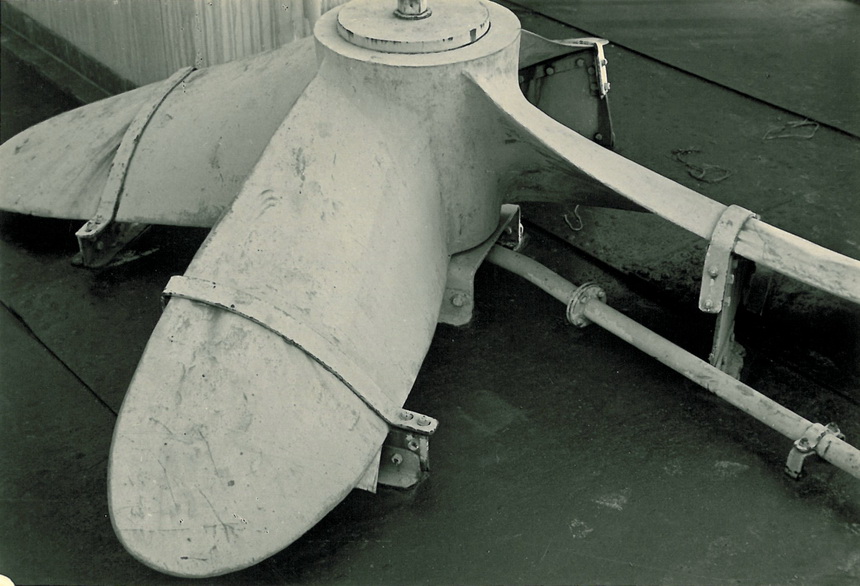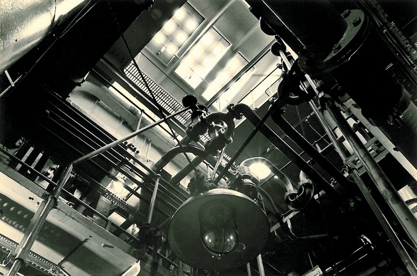 Blick hinauf zum Maschinen-Oberlicht / Vue de la salle des machines vers les écoutilles sur le pont / View upwards to the engine room skylight
