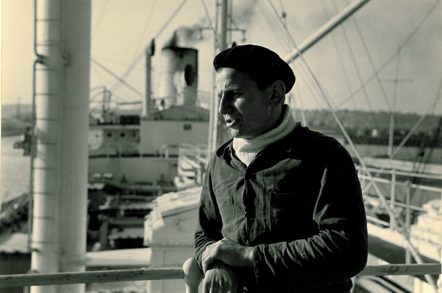 Gegen den Beschauer gerichtet Armand Bourquin im Hintergrund die ILE DE FRANCE / De face Armand Bourquin / Facing, Armand Bourquin, the ILE DE FRANCE in the background