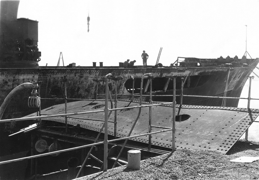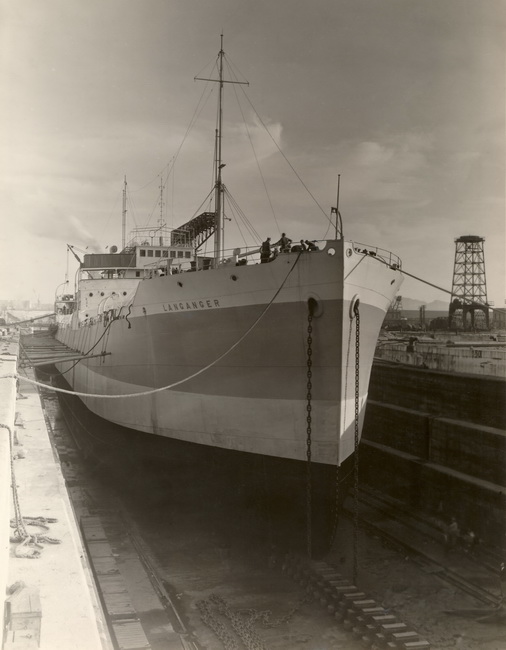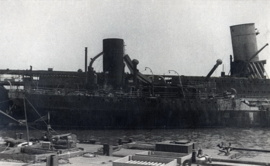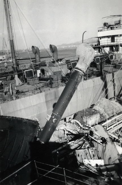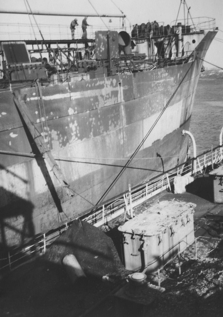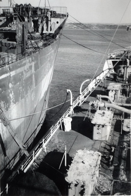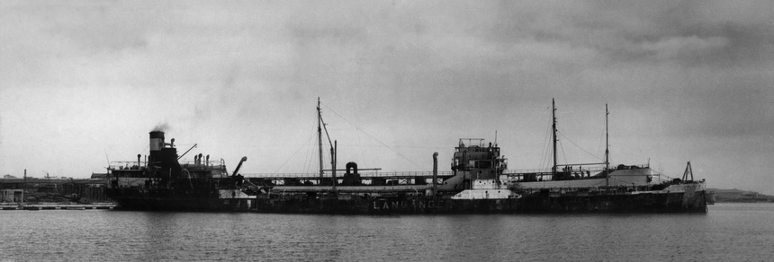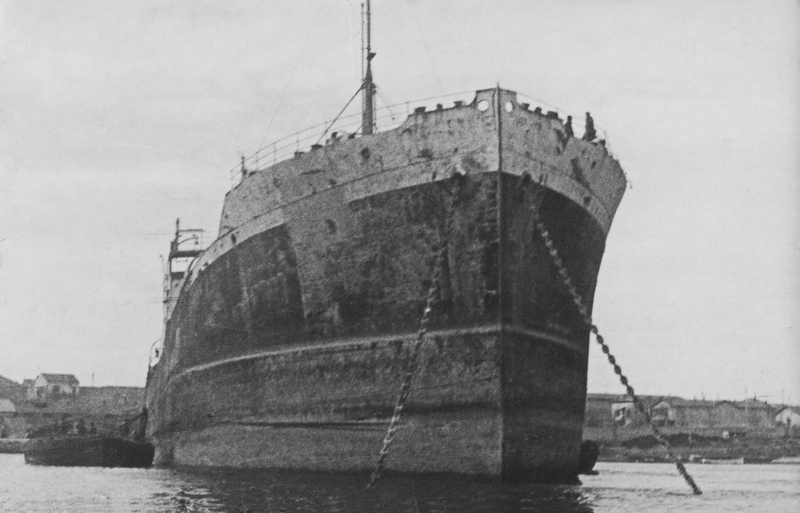 Port de Bouc August 1946: LANGANGER als Wrack, längseits der französische Motortanker DAUPHINE / As wreck alongside the French m/t DAUPHINE