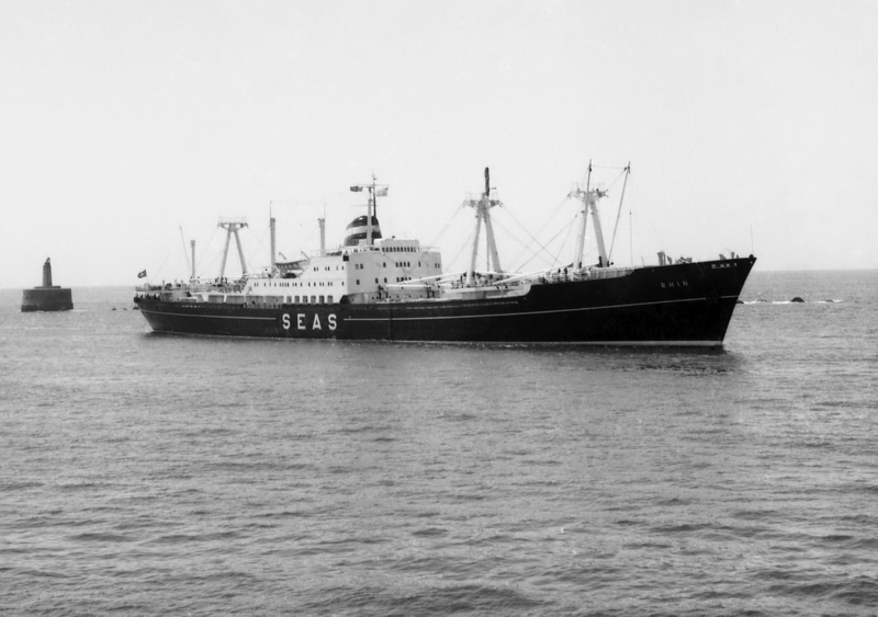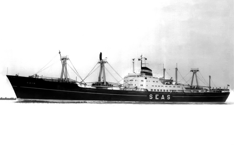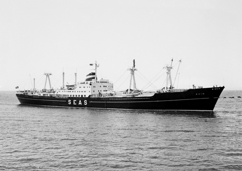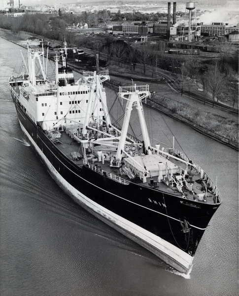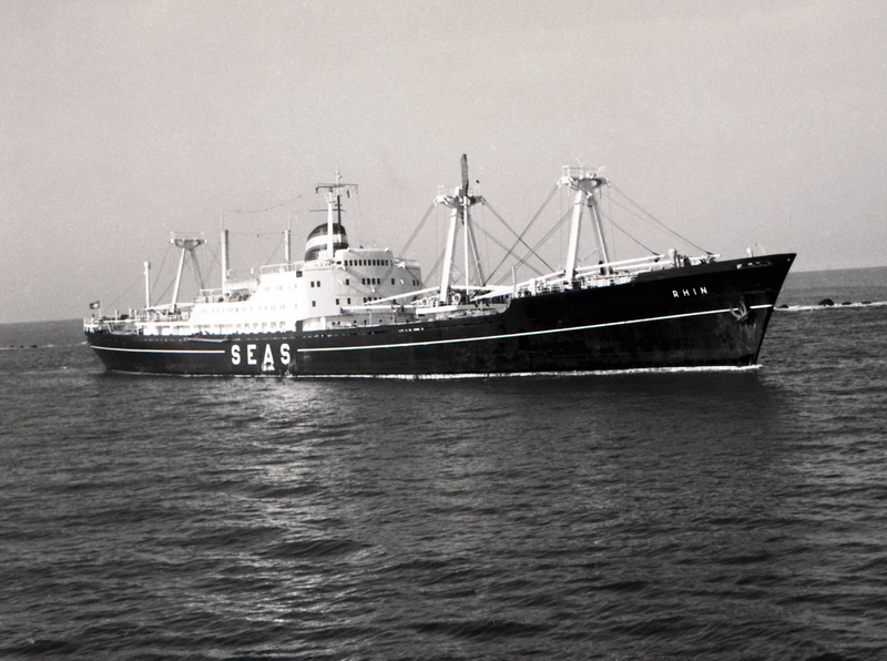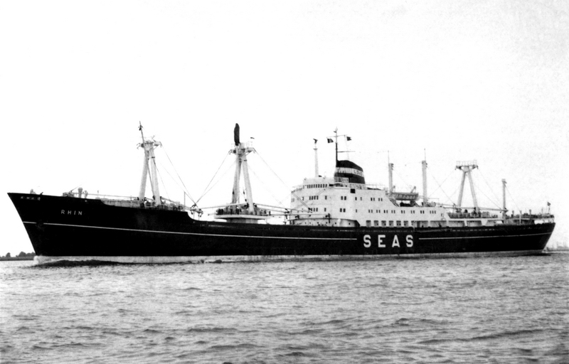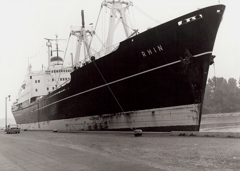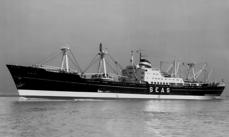 Come la gemella RHONE, anche questa nave da carico originariamente era stata commissionata dalla Louis Dreyfus & Cie. Dunkerque, Francia, presso il cantiere Stocznia Gdanska im. Lenina, Gdansk/Danzica, Polonia (numero di costruzione: B54/23). In fase di costruzione assegnata alla affigliata Getreide Finanzgesellschaft “Socel” Zurigo. Al Barone Hans Heinrich Thyssen-Bornemisza, proprietario della Suisse-Outremer S.A. era stato assegnato la quota di ⅓. Ultimata il 30-09-1961, immatricolata però appena il 02-11-1961 con il nome RHIN sotto bandiera Svizzera con porto d’scrizione Bâle/Basilea (Numero ufficiale: 66, nominativo internazionale: HBDS) e consegnata alla proprietaria, la Bernina Hochsee-Schiffahrts AG, Coira. Pare che c’erano da risolvere alcune domande legali riguardanti la registrazione, perciò il ritardo. Con la gestione a sua volta si occupava la Suisse-Outremer S.A. de Gérance et d’Affretement Maritimes, Ginevra. La RHIN era concepita specialmente per i viaggi verso il Sudamerica, vedi commento nella storia della nave RHONE. Assieme alla nave gemella RHONE era stata intromessa nel servizio di linea della SEAS, Societé Europe-Atlantique du Sud, una unione di armatori francesi offrendo servizi tra il Nordeuropa (Francia e porti del Nordeuropa fino ad Amburgo) e la costa orientale del Sudamerica (Brasile, Uruguay e Argentina). L’equipaggio era composto di 40 persone, prevalentemente cittadini Svizzeri. Nell’estate del 1963 la RHIN eseguiva due viaggi transatlantici verso il Canada e i Grandi Laghi. Agli inizi del 1964 segue un viaggio invernale verso Halifax, St. John e New York e in primavera per l’ultima volta era diretta a Duluth sul Lago Superiore (Lake Superior). Il 01-09-1963 la gestione cambia sede e nome diventando Suisse-Outremer Bereedungs-und Befrachtungs AG, Zurigo. Il 25-10-1966 ceduta alla Compagnie de Navigation d’Orbigny (C.N.O.), Rouen e rinominata LUCHON. Sotto bandiera francese con porto d’iscrizione Rouen rimane in servizio sulla stessa linea verso il Sudamerica (nominativo internazionale: FNTK). Dal 1979 entra in gestione alla Maldives Shipping Ltd., Bombay. Il 20-03-1980 venduta alla Belle Shipping Co. Panama (management: Asia Shipping Co. Ltd., Hong Kong, rinominata PARAMOUNT e intromessa in servizio sotto bandiera panamense (numero matricola: 9314-PEXT 1 / 10444-80, nominativo internazionale: H8PM). Nel 1983 passa alla Visvanath Rupa & Co., Durakana (Bombay). Il 12-07-1983 la nave arriva a Bombay, dove a novembre del 1983 inizia la demolizione. Fonti: