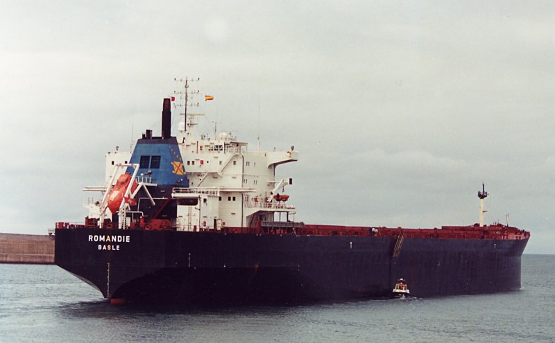Le m/s ROMANDIE, un vraquier Mark V de la classe Panamax, a été lancé le 10 juillet 1994 à Copenhague à partir du chantier naval Burmeister & Wain, puis transféré à la société Helica SA, Genève. Le baptême a eu lieu le 19 septembre 1994 à Copenhague en même temps que celui du navire jumeau m/s "Silvretta". Le 18 octobre 1994, le ROMANDIE a effectué son voyage inaugural à partir de Copenhague à destination de la Nouvelle-Orléans. La gestion du navire est assurée par Suisse-Atlantique, Société de Navigation Maritime SA, à Lausanne. Ce qu’il sied de relever est l’absence d’une étrave à bulbe. Quant au moteur principal, il s’agit d’un 5 RTA 62U New Sulzer Diesel Generator, qui développe 14'700 CV ou 10'812 kWh. Signal d’appel: HBDU. Le prix de construction du navire s'élevait alors à 30 millions de dollars américains. Hélica SA a vendu le m/s ROMANDIE le 31 janvier 2001 à Los Angeles à la Oceana Shipping SA de Coire. La gestion est toutefois restée entre les mains de Suisse-Atlantique SA. Le 30 juillet 2001, ce navire a été vendu à la société bahamienne Atlant Adria Corporation de Nassau, qui l'a enregistré sous pavillon croate et l'a baptisé PETKA. La gestion était assurée par la Atlantska Plovidba d.d. à Dubrovnik, le port d'enregistrement étant Dubrovnik, sous le numéro officiel 7T-382 et l’indicatif d'appel 9ANB. Transféré en janvier 2004 à la Atlant Bulkers Corp. (gestion et pavillon inchangés). Cédé en septembre 2007 à la Atlant Panamax Corp. (gestion et pavillon inchangés). Transféré en octobre 2007 à la Atlant Adria Corp. (gestion et pavillon inchangés). En janvier 2008, il est transféré à la Atlantic Conbulk Maritime (gestion et pavillon inchangés). En mai 2012, le navire est vendu pour environ 9'500’000 $ à la JITF Shipping & Logistics (Singapore) Pte. Ltd., Singapour (pavillon panaméen, gestion par la Orient Express Ship Management Ltd., Mumbai) ; il est rebaptisé JINDAL VARAD sous n° officiel 43373PEXT et indicatif d'appel 3FLK3. Le 21-11-2014 il est repris par la Priyanka Shipping Ltd (Scope Maritime Pvt Ltd), Mumbai, et enregistré sous pavillon de Saint-Kitts-et-Nevis à Basseterre avec l'indicatif d'appel V4ES3. Nouveau nom : DAL VA. La gestion a été transférée à la Royal Marine Shipmanagement Pte Ltd de Singapour. Le 25 janvier 2015, le navire est mis au sec sur la plage de Gadani Beach en vue de sa démolition. La société Jamaluddin & Co a commencé les travaux de démolition le 27 janvier. Sources :