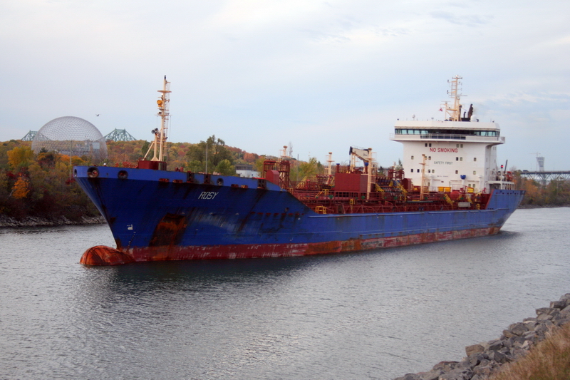 M/T ROSY, ex SCT STOCKHORN upbound in the St.Lawrence Seaway, St-Lambert area near Montreal. Destination Hamilton, Ontario on October 24, 2017